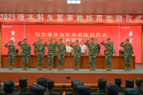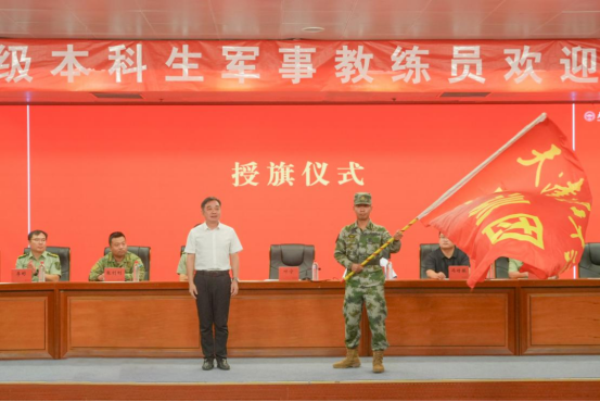 在激昂的乐曲声中,副校长叶宁为2025级本科生军训团授旗,军训团团长赵乾庄严接旗,并依次向各营(独立连)授旗。全体与会领导为军事教练员代表佩戴臂章,熠熠生辉的臂章象征着荣誉,更承载着责任。