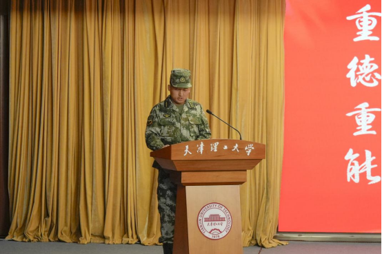大会在雄壮的《中华人民共和国国歌》声中拉开帷幕。张利刚参谋宣读《天津理工大学2025级本科生军训团任职命令》,92名政治过硬、作风优良、技能精湛的军事教练员正式受领带训任务。