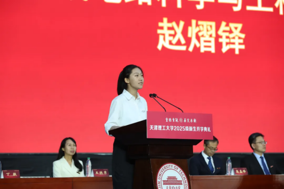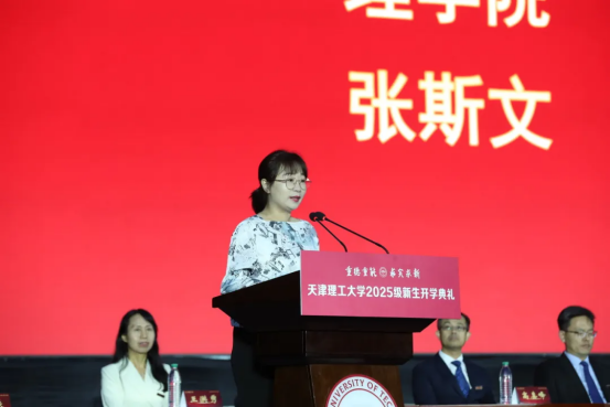 教师代表、理学院教授张斯文在发言中表示,希望广大新生做“重德”的人,让善良正直成为人生的底色;做“重能”的人,用扎实本领回应时代的召唤;做“求实”的人,在纷繁世界中锚定真理坐标;做“求新”的人,以创新思维打破认知边界。以青春为笔,以奋斗为墨,在人生画卷上书写属于自己的璀璨篇章。
